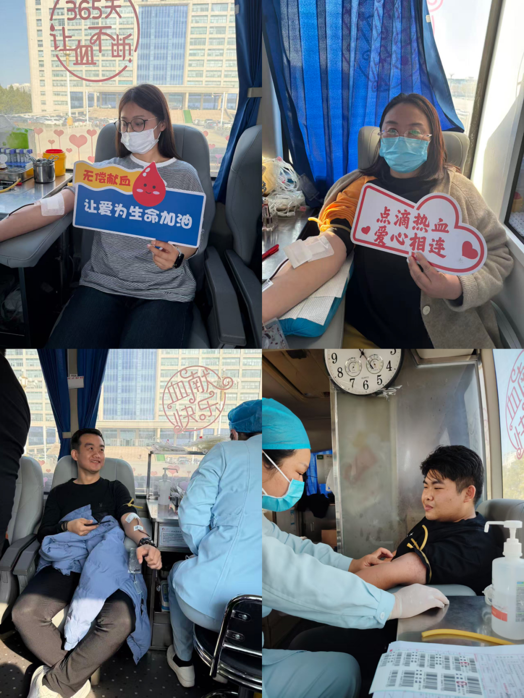 当鲜红的血液顺着导管缓缓流入血袋时,他们的脸上没有丝毫犹豫,反而满是坚定与欣慰。现场还有年轻干部职工是第一次献血,面对针头时虽有一丝紧张,但在身边同事的鼓励、医护人员的安抚下,很快放松下来,顺利完成献血。